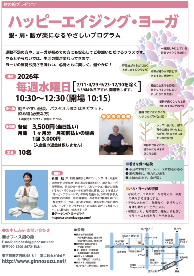 持ち物 動きやすい服装 横になるための敷物(バスタオルなど)必要な方は水分補給用の飲み物
